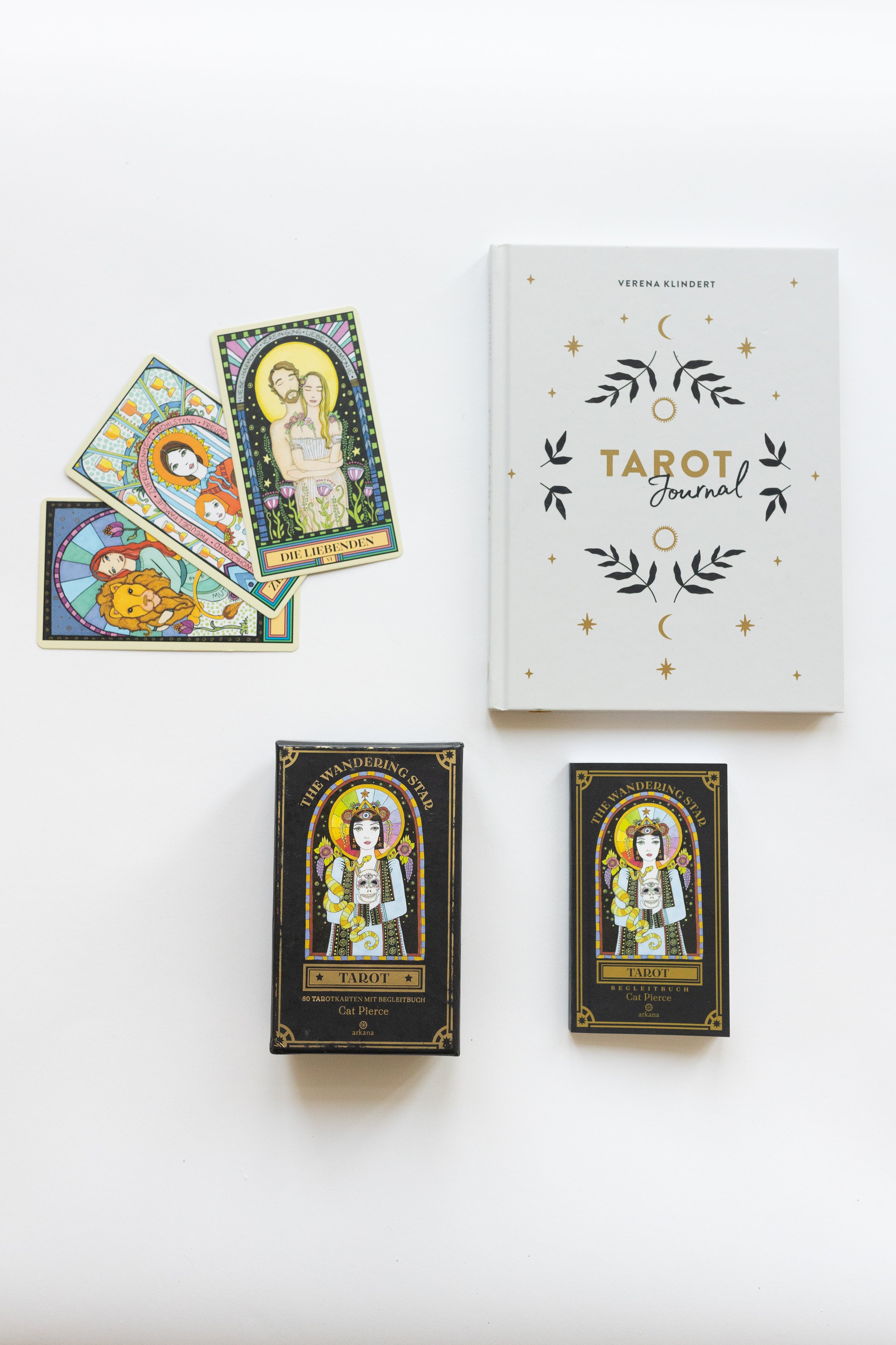 Do you want to tune into the world of magic tarot ? This Set combines the enchanting "The wandering star" Set, which is designed by Cat Pierce, and a Tarot Journal (designed by Verena Klindert) where you can write down everything that the cards once told you. This Set is a cosmic companion for those navigating the labyrinth of self-discovery.